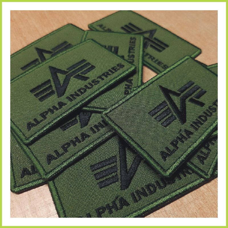 Dvojfarebná vyšívaná nášivka loga ALPHA INDUSTRIES.