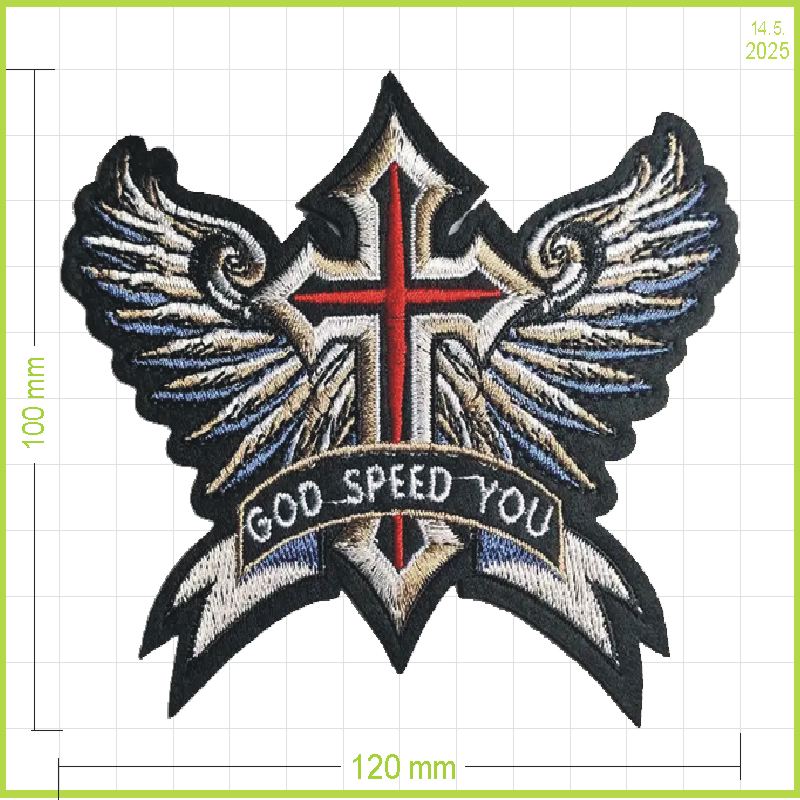 Viacfarebná vyšívaná nášivka GOD SPEED YOU.