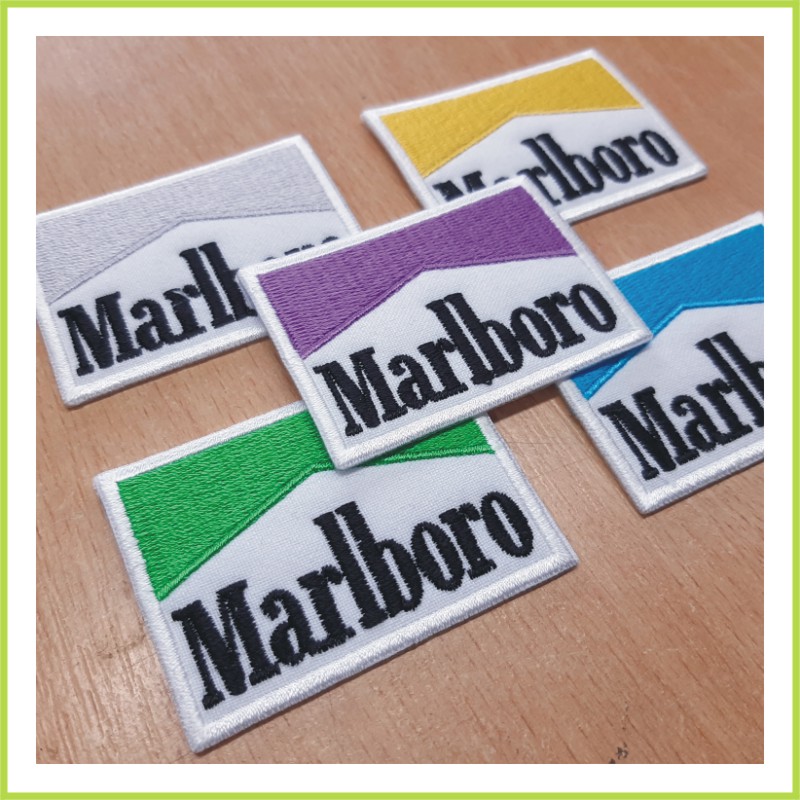 Trojfarebná vyšívaná nášivka loga MARLBORO v obľúbenej farbe. Ponúkame možnosť navolenia farby ,,striešky,,.