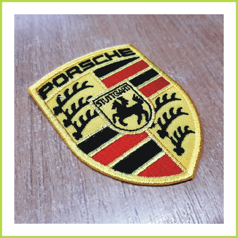 Trojfarebná vyšívaná nášivka loga PORSCHE.