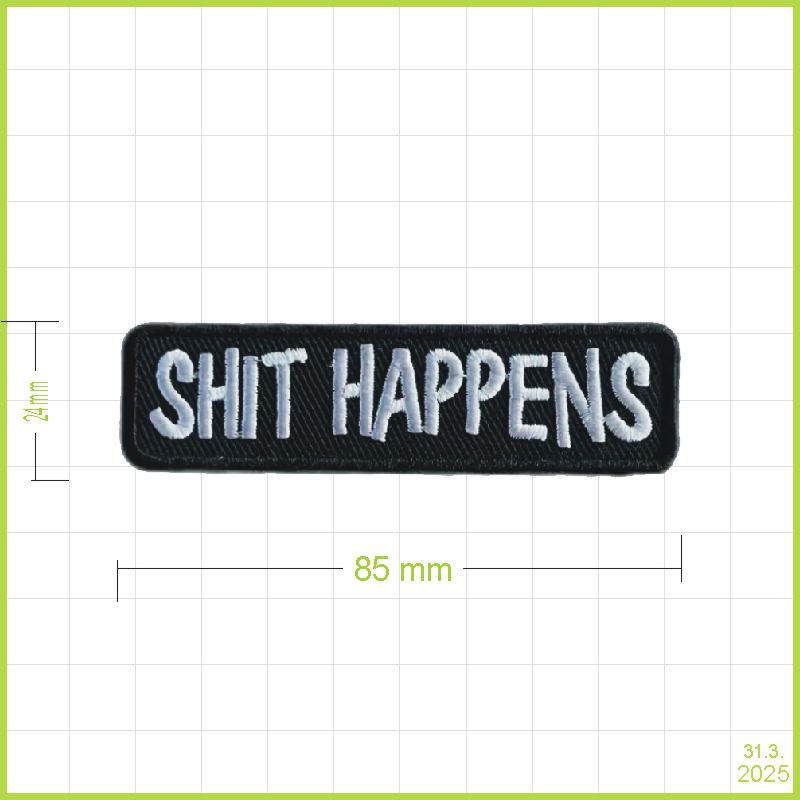 Dvojfarebná vyšívaná nášivka SHIT HAPPENS.