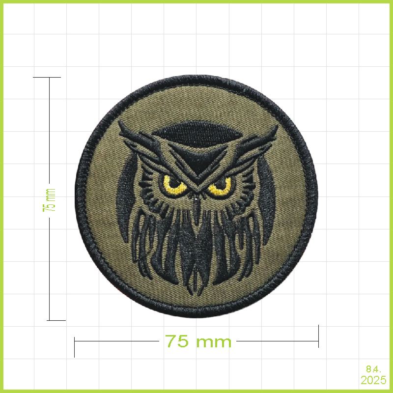 Trojfarebná vyšívaná nášivka sovy.