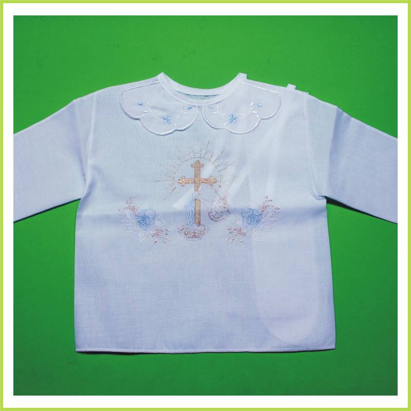Vyšívaná krstová košieľka z motívom kríža a kalicha.