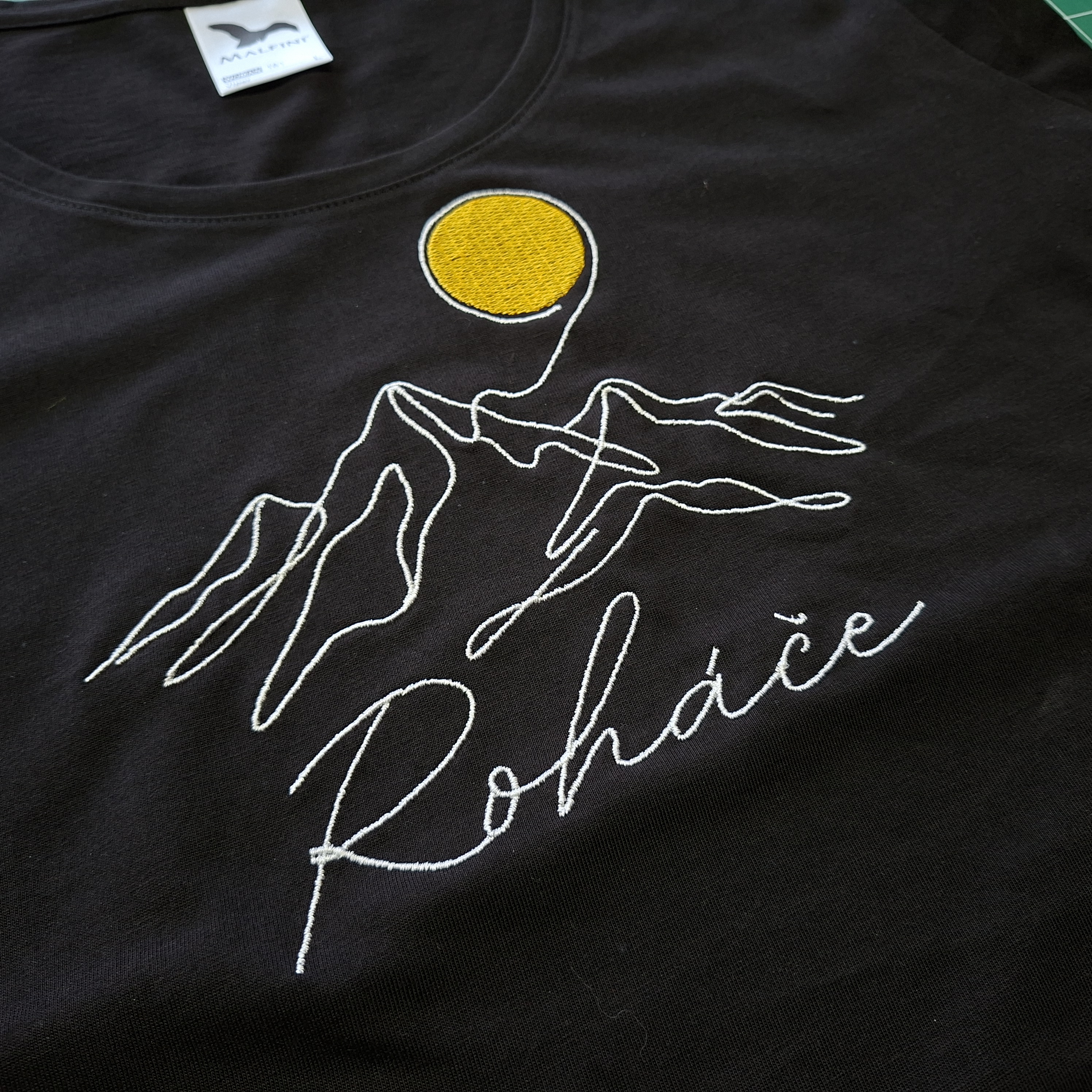 Na tričkách vo farbe: 01, 02, 05 a 49 je silueta a nápis vyšitý bielou niťou.
