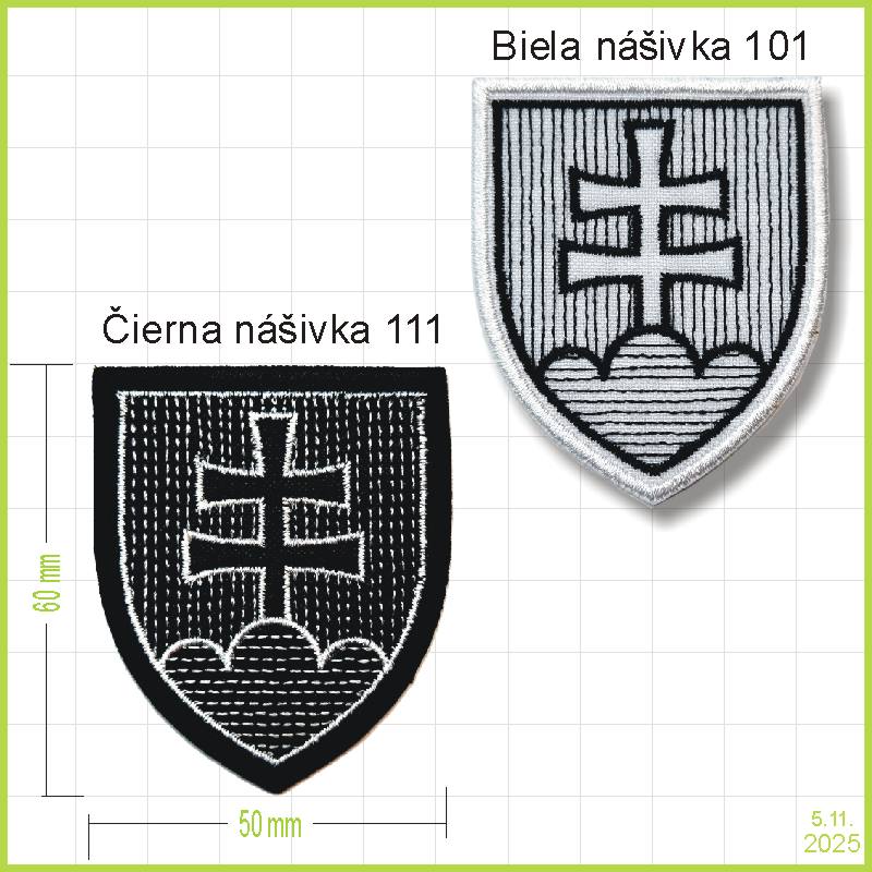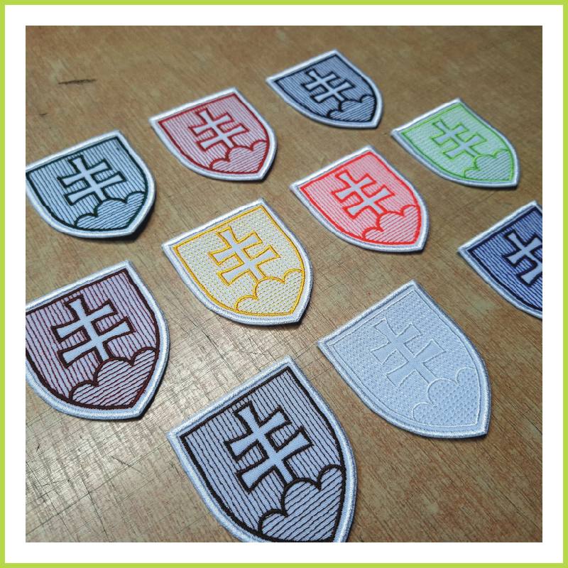 Dvojfarebná vyšívaná nášivka Slovenského znaku na čiernom alebo bielom podklade. Možnosť výberu farby výšivky.